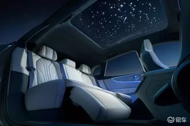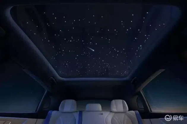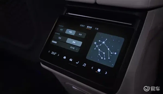 此外,新车还配备了“浩瀚星空顶”,通过后排空调出风口区域的控制屏可以调整样式,例如呈现出某个星座的图案,这通常是百万级豪车才有的配置。