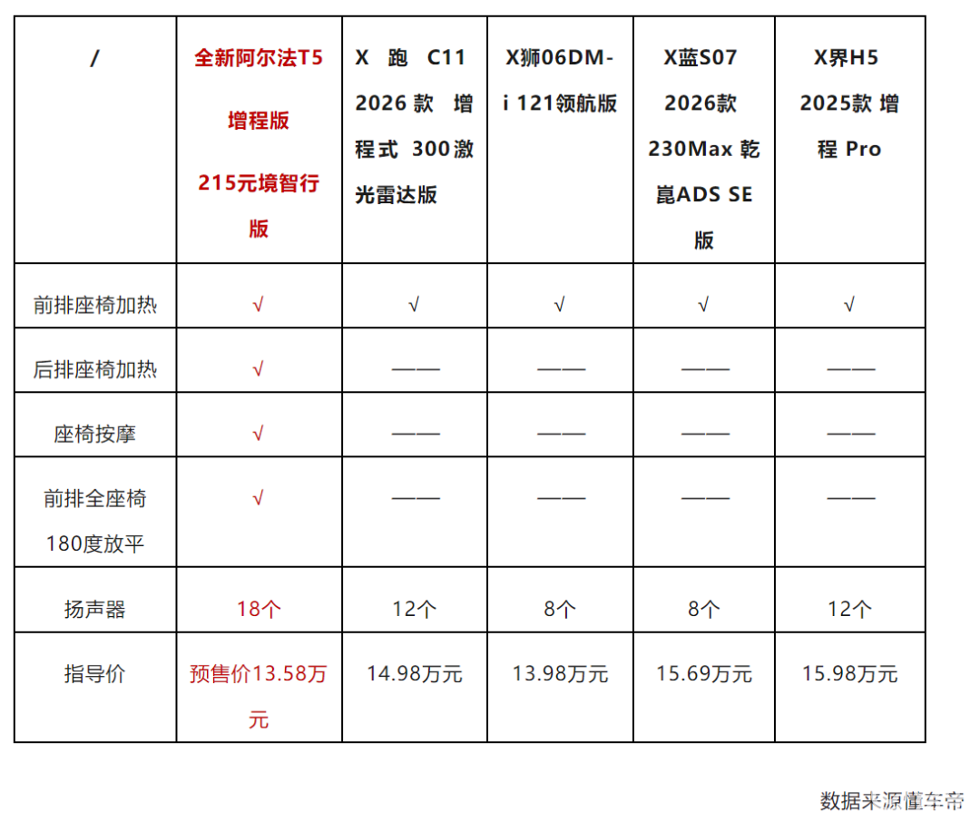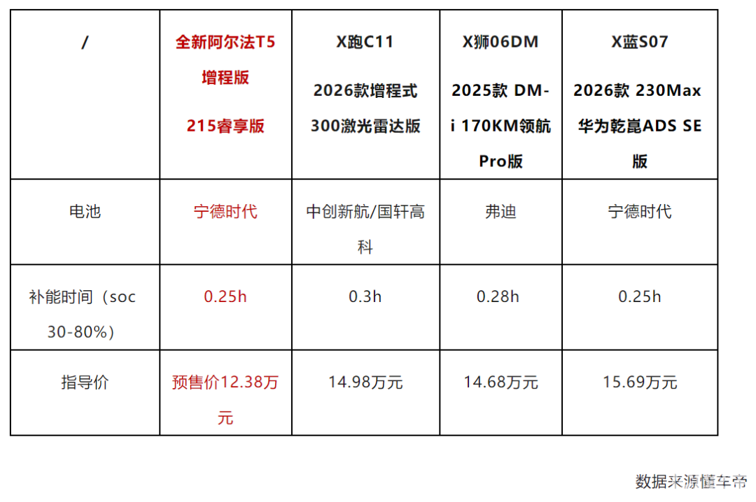 全新阿尔法T5增程版以前瞻技术定义新一代增程。搭载宁德时代骁遥增程专属电池+北汽神擎增程动力,解决了传统增程车续航虚、馈电无力、抖动噪音大等3大痛点,带来耳目一新的增程出行体验。