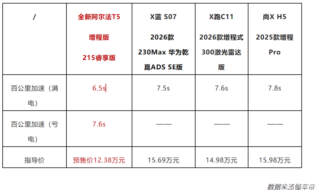 在家庭用户关心的动力方面,全新阿尔法T5增程版峰值功率200kW,峰值扭矩365N·m,满电零百加速仅6.5秒,即使在亏电状态下零百加速仍能保持7.6秒优异成绩,爬坡过坎、高速超车全部游刃有余。无论满电馈电,全新阿尔法T5性能随时在线,“快人一步”尽享百万级别澎湃驾控。