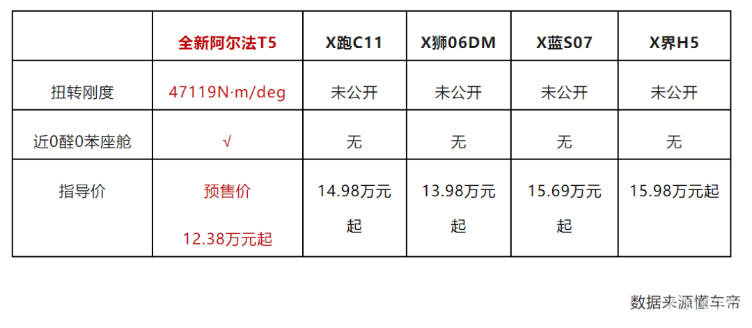 全新阿尔法T5采用1500MPa高强度热成型钢,高强钢及铝合金占比高达81%,扭转刚度达到了47,119N·m/deg,与之对比劳斯莱斯幻影的扭转刚度是40,000N·m/deg,“公路坦克”实至名归。