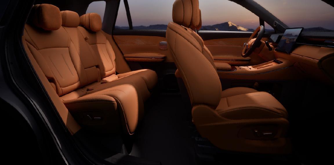 车内大面积软包,坐着、靠着都不会感觉到生硬。1.268米的车内高度让车内乘客坐着不压抑,搭配考究的座椅填充物以及二排座椅靠背支持137° 最大角度电动调节,不论长短途,不论高矮胖瘦,都能找到舒服的乘坐姿势。再加上全车座椅都支持通风加热按摩,舒适平权,坐得舒服这块,没什么悬念。