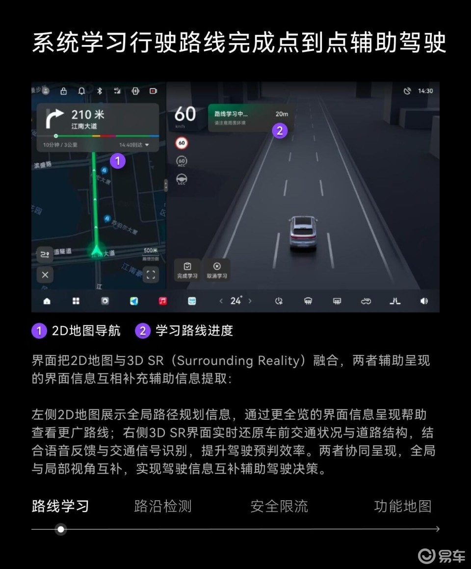 配备激光雷达的车型,新增通勤领航辅助功能,通过学习日常上下班通勤路线,实现点对点辅助驾驶。