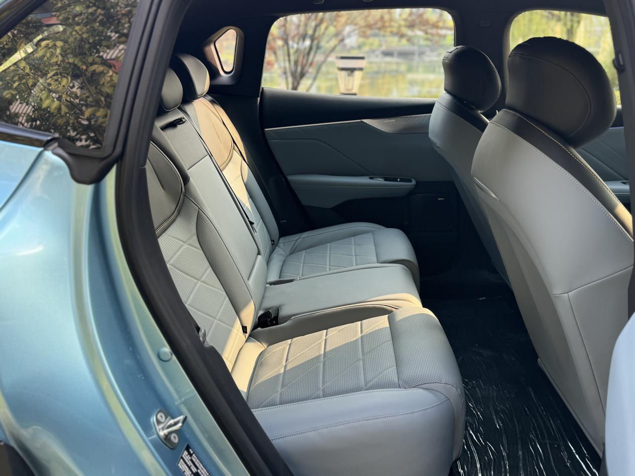 银河E5的轴距为2750mm,这一设计更接近燃油车,因为轴距比深蓝S05短了130mm,所以第二排腿部空间也有一定程度缩短。其后备箱空间为461L,因为银河E5的前置驱动电机,所以没有前备箱空间。